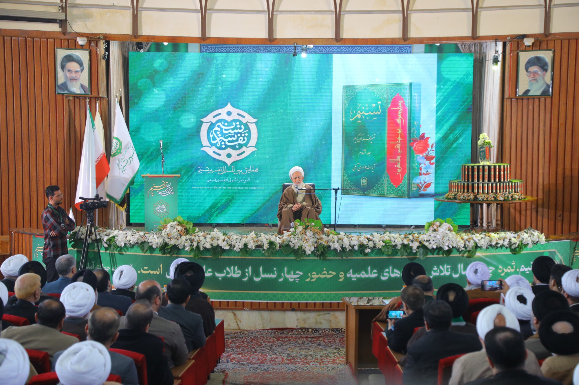 همایش بین المللی تفسیر «تسنیم»، اثر عظیم علمی و تفسیری حضرت آیت الله العظمی جوادی آملی، صبح امروز با حضور حضرت آیت الله جوادی آملی و سخنرانی معظم له در سالن همایش های مدرسه دار الشفاء در قم برگزار گردید.
