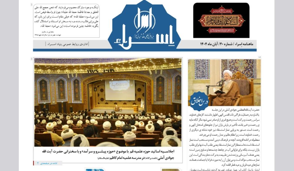 مرکز نشر اسراء ، ناشر اختصاصی آثار آیت الله جوادی آملی، در سال 1372 شمسی آغاز به کار نمود؛ تولید آثار مکتوب با کیفیت مطلوب و استاندارد، عرضه سریع، به موقع، با قیمت مناسب و پیشتیانی محصولات ، بستر سازی دسترسی آسان، سریع و کم هزینه مخاطبان داخل و خارج کشور به محصولات، حضور در نمایشگاه های بین المللی داخلی و خارجی از وظایف و ماموریت این مرکز می باشد.
